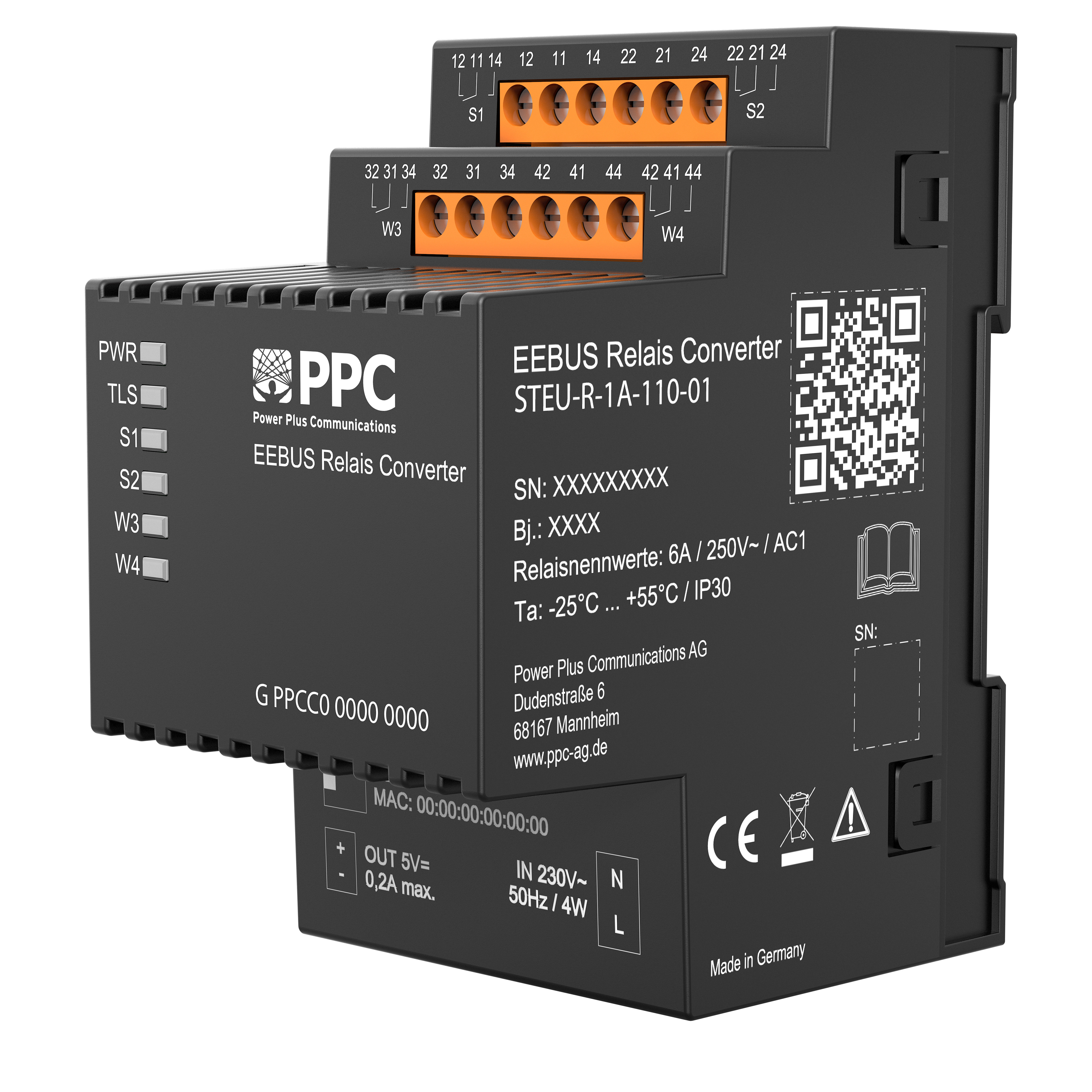 The EEBUS format from EEBUS Initiative e.V. is established as the standard for control signals from the grid. Our EEBUS Relay Converter converts EEBUS signals such as Limitation of Power Production (LPP) or Limitation of Power Consumption (LPC) into relay switchings.